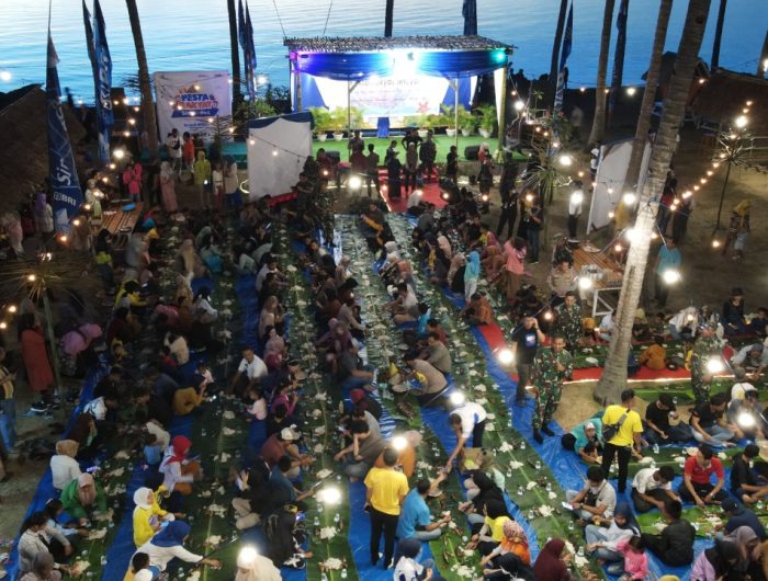 ” Kita makan bersama di Pelataran Sunari Beach yang telah di alas karpet, Anggota akan melayani pengunjung, termasuk saya dan Pak Dandim juga akan melayani. Jadi silahkan masyarakat duduk kami yang melayani” kata Kapolres.