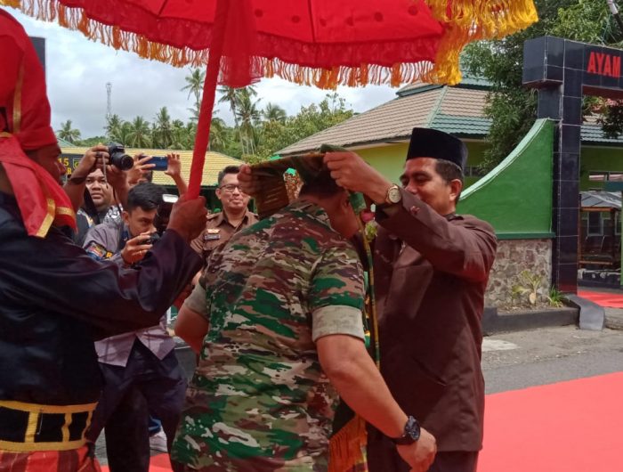 Kedatangan orang nomor satu di Korem 141/Toddopuli tersebut disambut oleh Wakil Bupati Selayar, H. Saiful Arif SH yang ditandai dengan pengalungan sarung sabbe.