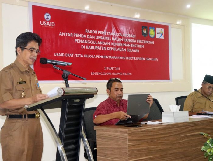 SELAYAR,WASPADAPOS.COM- Pemerintah Kabupaten Kepulauan Selayar melalui Tim Koordinasi Penanggulangan Kemiskinan Daerah (TKPKD) bekerjasama dengan USAID ERAT melaksanakan rapat koordinasi penanggulangan kemiskinan Ekstrim Kabupaten Kepulauan Selayar Tahun 2023 di Rayhan Square, Selasa (28/3/2023).