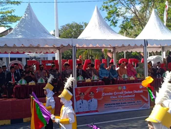 SELAYAR, WASPADAPOS.COM- Kapolres Kepulauan Selayar AKBP. Ujang Darmawan Hadi Saputra, SH. S.IK., MM.,M.IK bersama Jajaran Forkopimda hadir di Tenda Kehormatan, dalam rangka menyaksikan Lomba Drumband dan Gerak Jalan Indah tingkat SD, SMP, SMA Sederajat, hari ini Selasa (15/08).