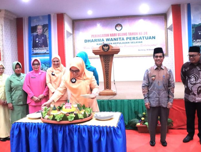 SELAYAR, WASPADAPOS.COM – Dilandasi tema “Peran strategis perempuan dalam pembangunan berkelanjutan” Dharma Wanita Persatuan (DWP) Kabupaten Kepulauan Selayar merayakan hari jadinya yang ke 24 bertempat di Ruang Pola Kantor Bupati, Sabtu (30/12/2023) Pagi.