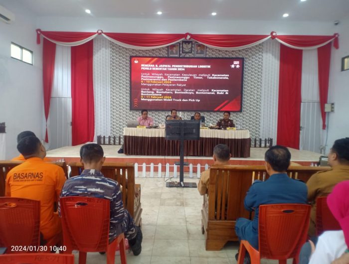 “ Jadi kita harus satukan persepsi dulu dalam melakukan pendistribusian logistik pemilu baik yang ada di daratan Selayar maupun yang ada di pulau pulau di Selayar ini. Kapan didistribusikan, dengan menggunakan apa, bagaimana Teknisnya, siapa yang terima, disimpan dimana. Dan yang terpenting adalah upaya antisipasi jika terjadi hal-hal yang tidak diinginkan” jelas AKBP. Ujang Darmawan HS.