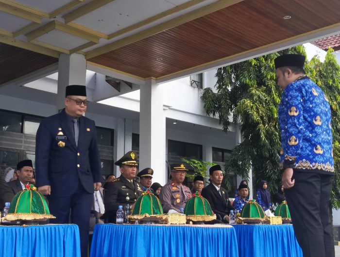 Sekretaris Daerah Mesdiyono, M.Ec.,Dev yang bertindak sebagai Inspektur upacara dalam amanatnya membacakan pidato dari Kementerian Pendidikan, Kebudayaan, Riset dan Tehnologi Republik Indonesia.