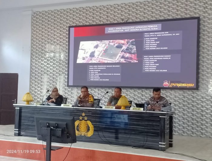 Waspadapos-Polres Kepulauan Selayar menggelar rapat koordinasi sehubungan dengan rencana pelaksanaan kampanye terbuka Pasangan Calon Bupati dan Wakil Bupati Kepulauan Selayar 2024, yang dilaksanakan di Aula Endra Dharma Laksana Mapolres, Selasa (19/11) pagi.