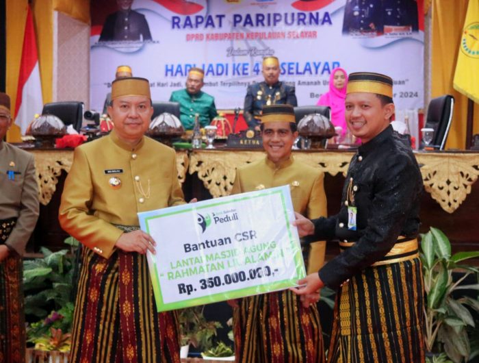 SELAYAR, WASPADAPOS.COM- Bupati Kepulauan Selayar Muh. Basli Ali terima bantuan bantuan Corporate Social Responsibility (CSR) senilai senilai 350 juta rupiah dari PT. Bank Sulselbar
