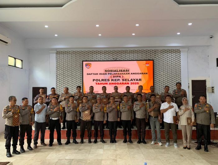 SELAYAR, WASPADAPOS.COM- Polres Kepulauan Selayar menggelar Sosialisasi Daftar Isian Pelaksanaan Anggaran (DIPA) Tahun Anggaran 2025 dan Penyerahan Rencana Pendistribusian Anggaran (Rendisgar) kepada Satuan Fungsi Jajaran, hari ini Jumat (27/12).