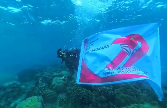 Cara Unik Peringati Hari Bhayangkara ke‑79, Polsek Bontomanai Polres Selayar Gelar Upacara di Bawah Laut