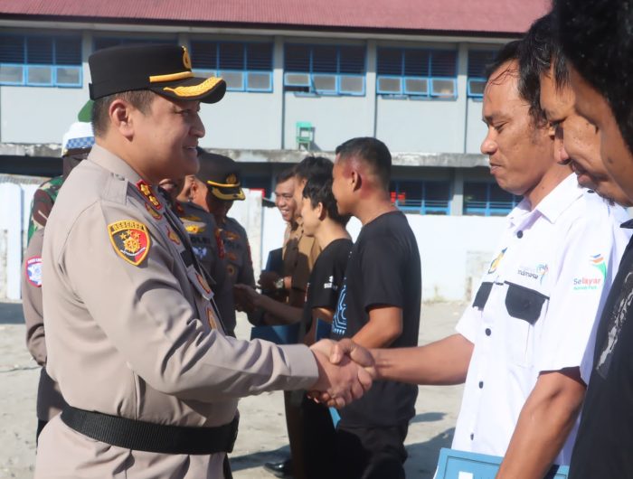 Waspadapos– Setelah sukses menggelar Kejuaraan Menembak dalam rangka Hari Bhayangkara ke-79, Polres Kepulauan Selayar bersama Perbakin secara resmi menyerahkan hadiah dan penghargaan kepada 9 pemenang lomba, Senin pagi (14/7) di Halaman Mapolres Kepulauan Selayar, usai pelaksanaan Apel Gelar Pasukan Operasi Patuh 2025.