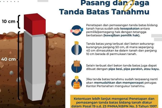 Suharno menjelaskan, pemasangan tanda batas menjadi bagian penting dalam menjaga hak kepemilikan tanah secara mandiri, terutama dalam menghadapi berbagai potensi penyalahgunaan, termasuk oleh mafia tanah.